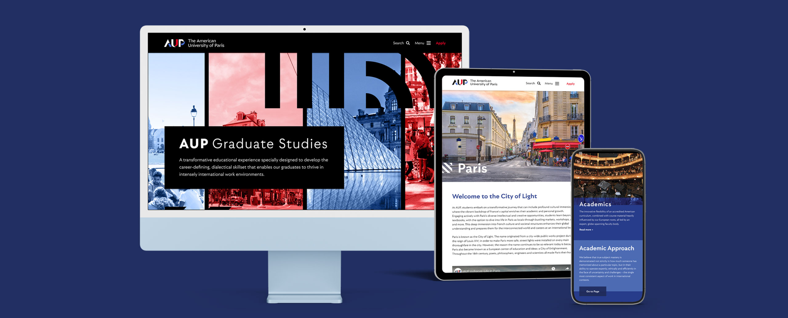 A unique web space and online identity for The American University of Paris’ graduate programs.