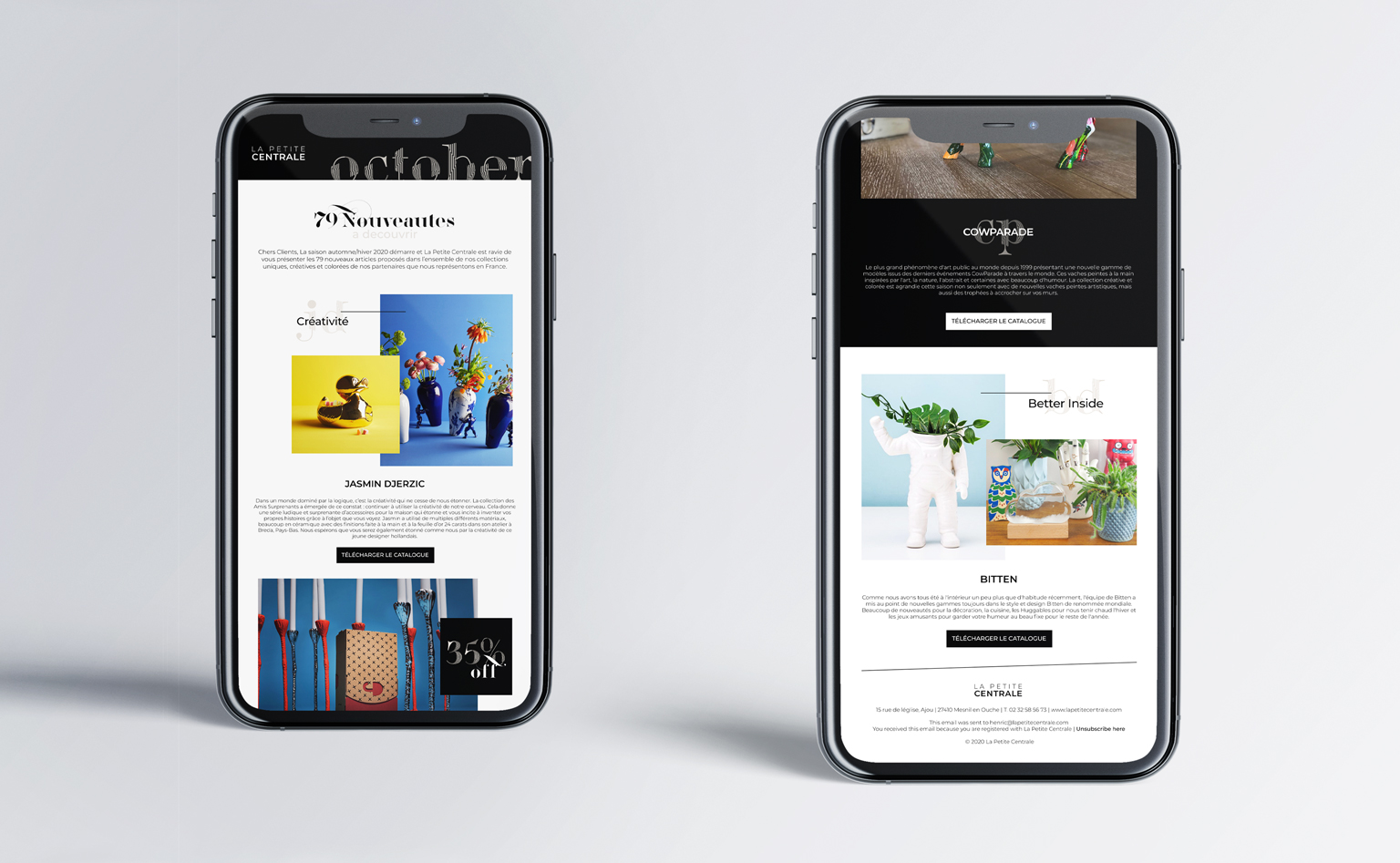 La Petite Centrale believes that the types of goods that people display in their homes should always have a story that’s worth telling. In homage to this narrative philosophy, our visual style embraces the dynamic use of typography, rich color contrasts and floating elements, all of which draw customers in and invite them to discover the hidden stories the products have to tell.